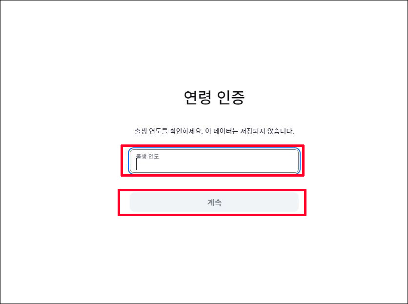 ② 연령 인증 페이지 → 출생 연도 기입 → 계속