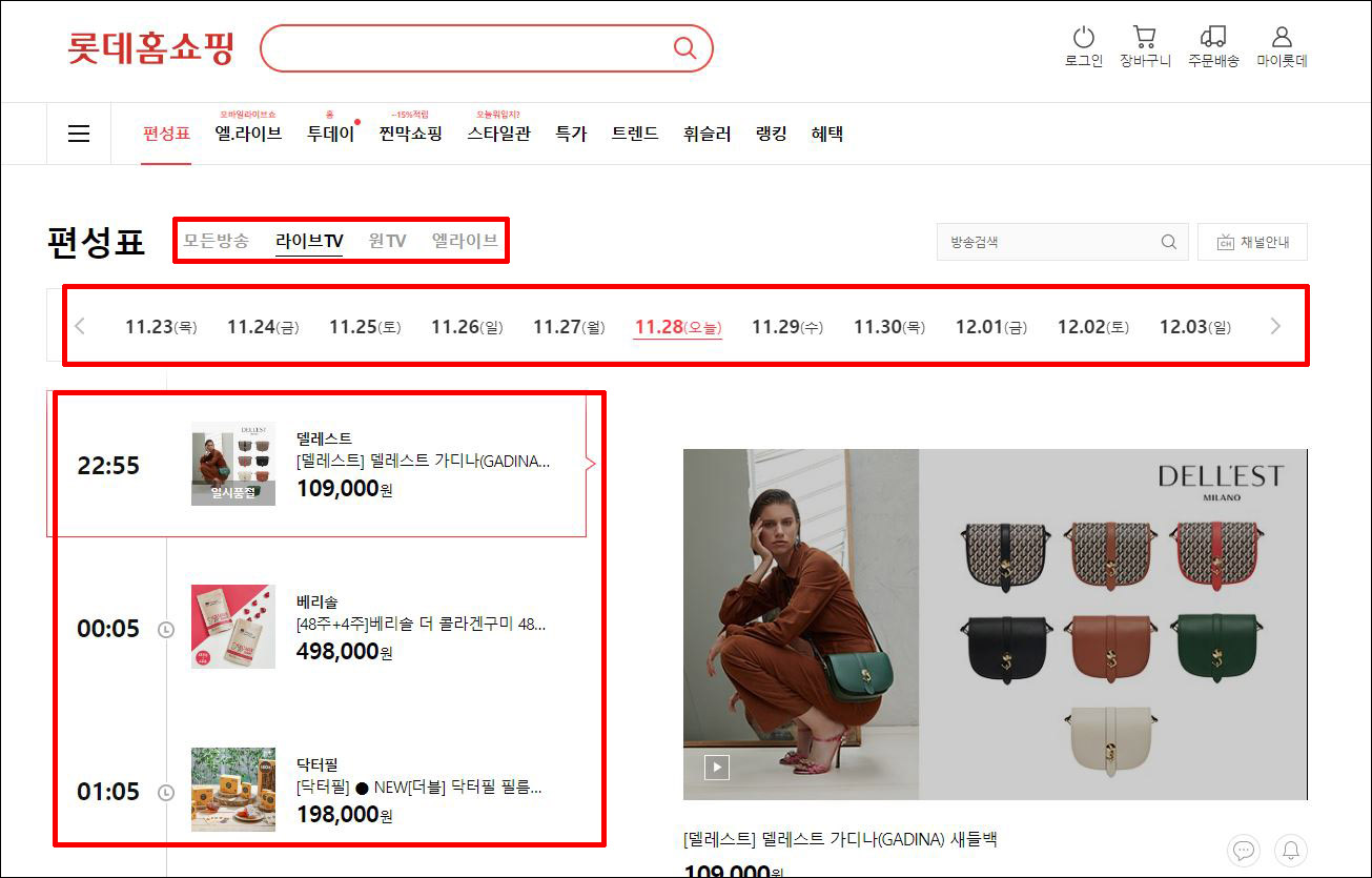 롯데홈쇼핑 편성표(시간표)를 찾고 계신가요? 롯데홈쇼핑 편성표는 라이브TV, 원TV, 엘라이브 등 모든 제품의 방송시간과 정보를 제공하고 있습니다.