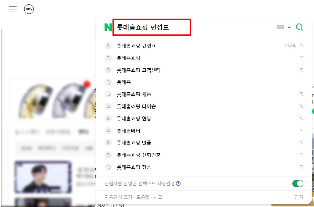 ① 포털사이트 검색란에 "롯데홈쇼핑 편성표"를 검색합니다.