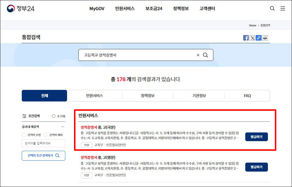 중·고등학교 성적증명서는 온라인을 통해 발급받을 수 있습니다. 정부24홈페이지에 방문하여 비교적 쉽고 간단하게 발급이 가능합니다.
