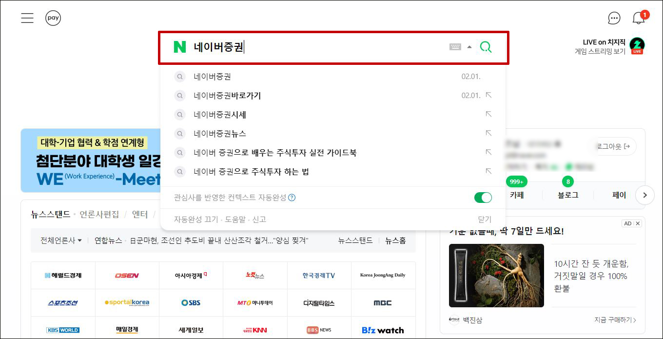 네이버 메인페이지 이용
