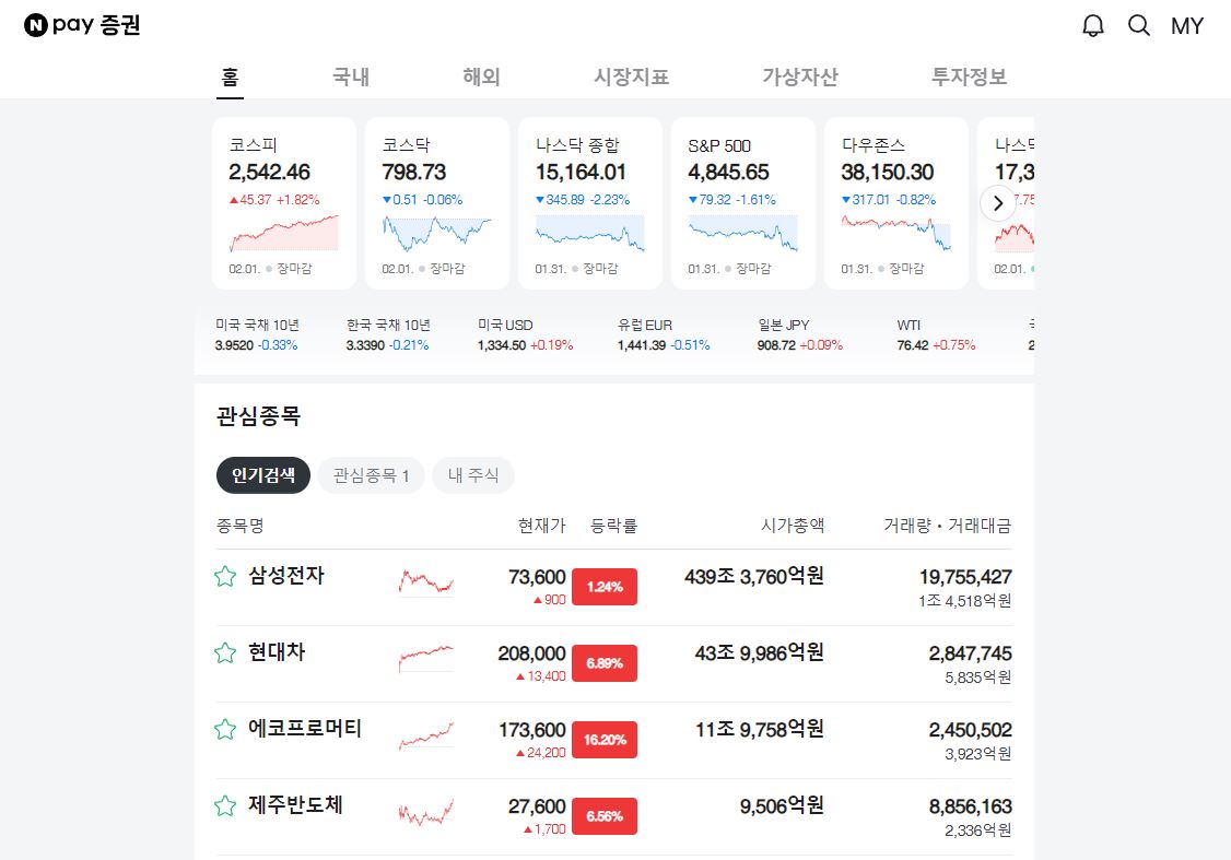 네이버 증권은 메인 홈페이지에서부터 뉴스, 증권, 부동산 등 다양한 카테고리를 제공하며, 투자에 필요한 실시간 정보와 분석을 도와줄 수 있습니다.