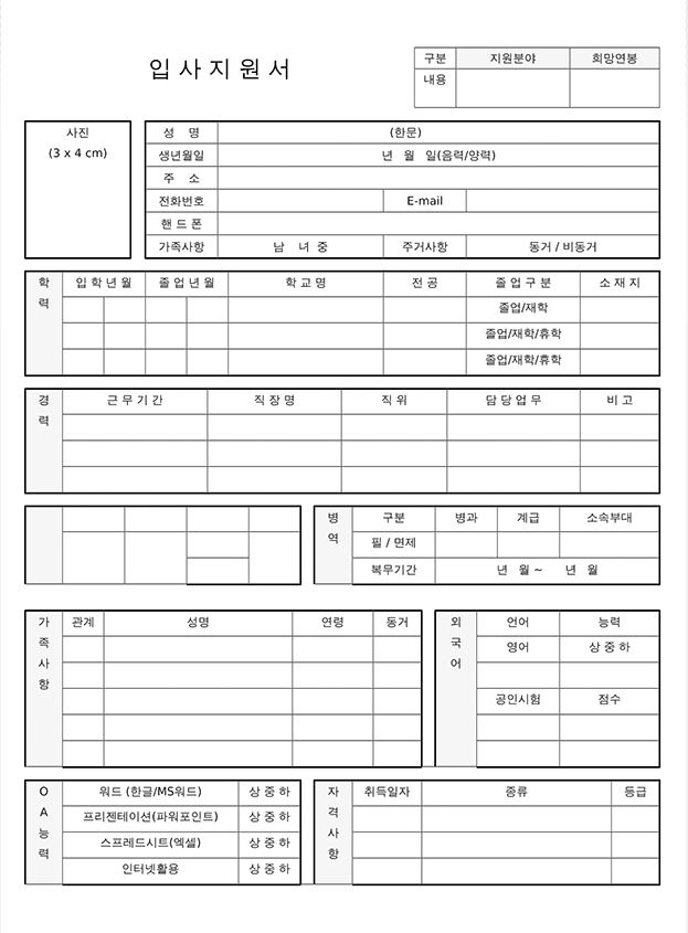 이력서 무료 다운로드(word, 한글, execel)