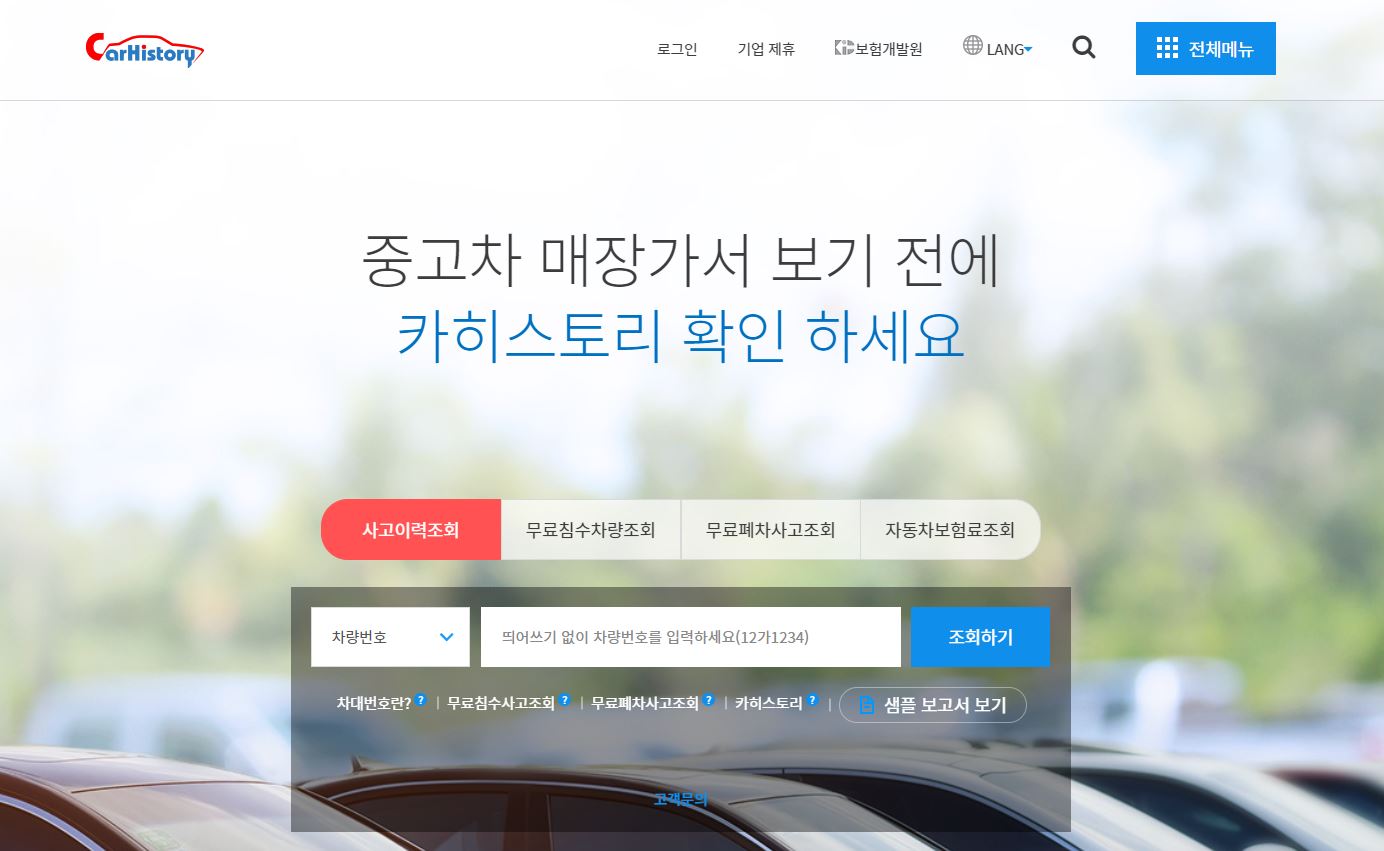 이 서비스는 차량의 침수 이력을 제공해 신뢰할 수 있는 중고차 이력을 제공해 중고차 구매 전에 꼭 확인이 필요합니다.