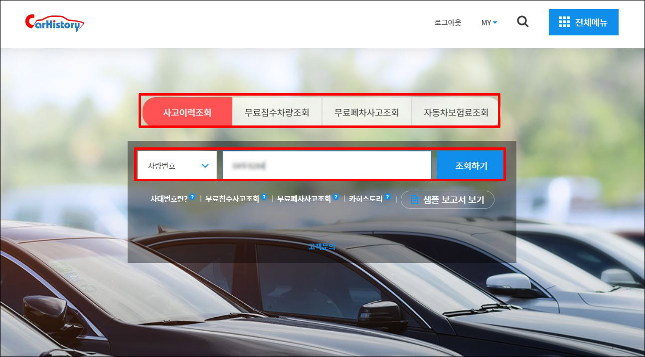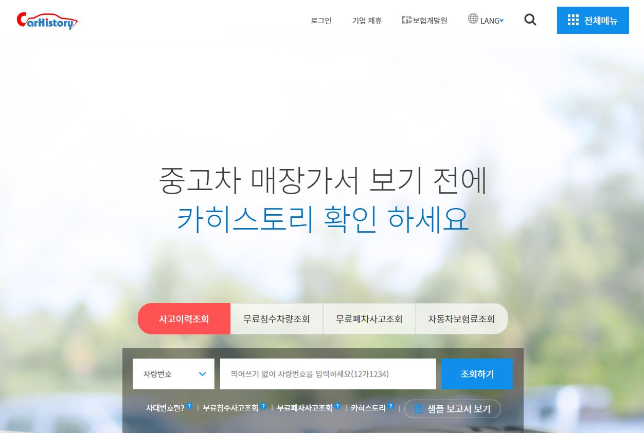 해당 홈페이지(www.carhistory.or.kr)홈페이지에 접속하여 조회를 원하시는 차량번호 또는 차대번호를 입력하면 차량의 과거 보험사고 차료를 확인할 수 있습니다.