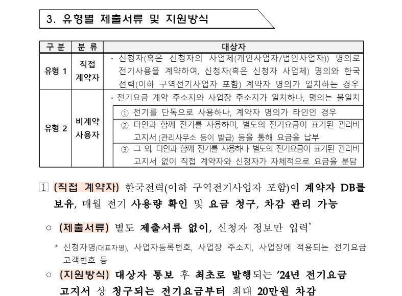 직접계약자: 한국전력 또는 지역 전기사업자를 통해 직접 신청한다.