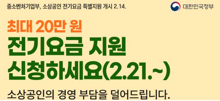 전기요금 특별지원은 영세 소상공인들의 경영 부담을 덜어주고 지속 가능한 경영을 돕기 위한 정책으로 중요한 역할로 1차 접수는 2월 21일(수)부터 4월 20일(토) 요일 까지였습니다.