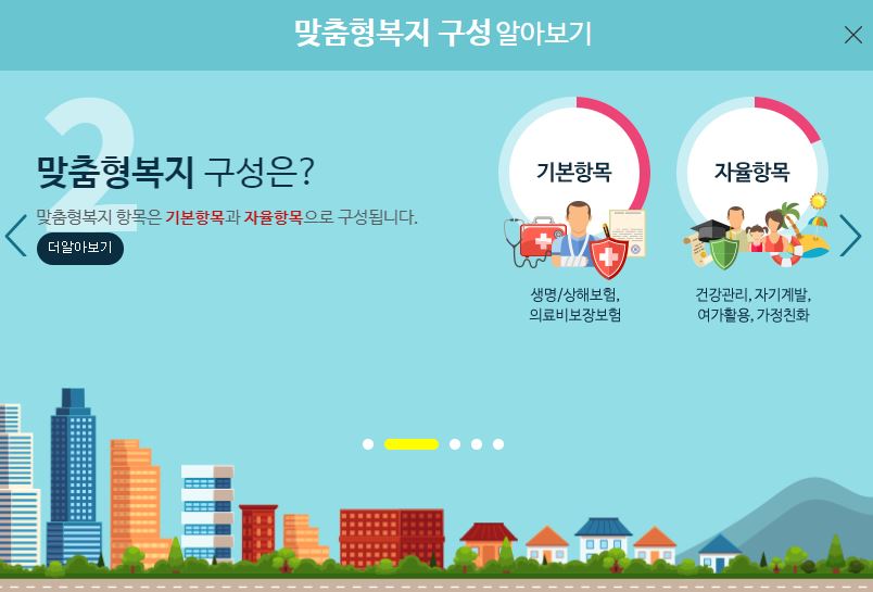 복지점수(근속, 기본, 가족복지점수)를 토대로 후생복지제도를 파악한 후 공무원에게 포인트를 배정하고 운영되고 있습니다.