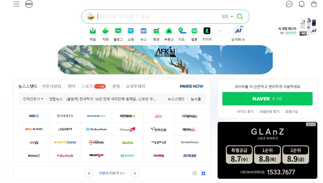 네이버 홈페이지에 들어가면 상단에 검색창이 보입니다. 거기에 ‘글자 수 세기’라고 입력한 후 검색 아이콘을 클릭하거나 Enter 키를 누릅니다.