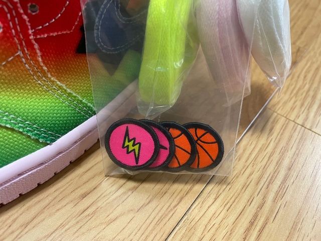 각각 스마일 캐릭터와, 번개 마크, 농구공 디자인의 패치로 3종이 동봉되어 있다.