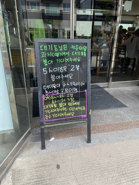 12시즘 점심시간에 맞춰가니 웨이팅이 있었다. 대략 15분 정도 소요되었고, 주차장이 협소하여 주변 도로에 주차를 했다. 정문에서 대기번호를 뽑고 외부의 의자에 착석해서 기다릴 수 있다. 웨이팅이 길어도 회전율이 빨라 사람들이 빠르게 오고 가는 모습이다.