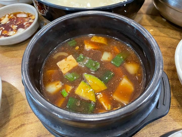 초당순두부를 시켜면 된장찌개도 제공된다. 된장찌개는 우리가 어느 가게에서도 먹을 수 있는 평범한 맛이긴 하다.