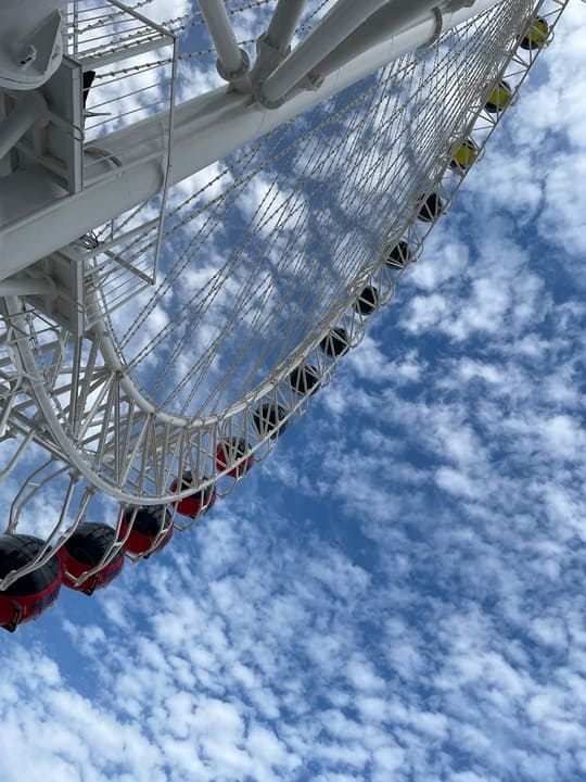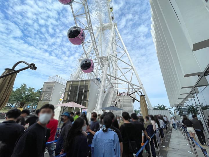 건물 입구에서 결제를 하고 건물 안을 통과하면 대관람차 앞까지 길게 대기줄이 눈에 들어온다. 한 15~20분가량 소요되어서 계단을 올라 대관람차 코앞까지 도착하였다.