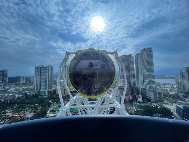 어느덧 대관람차 정상에 도달했다. 속초시내가 한눈에 보인다. 정상을 찍고 점차 점차 땅과 가까워진다. 어쩐지 10분이 짧게만 느껴진다.