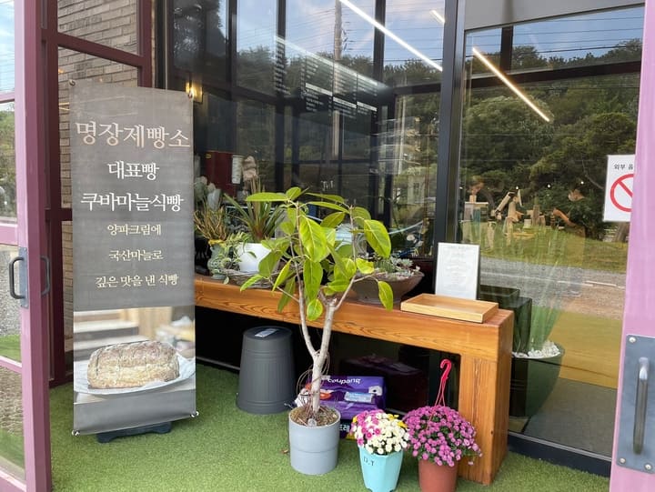 입구에는 명장제빵소를 대표하는 메인 베이커리인 <쿠바마늘식빵>을 소개하고 있습니다. 고소한 양파 크림과 국산 마늘로 깊은 향을 낸 식빵이라고 하네요. 기대가 됩니다. 대체적으로 깔끔한 외관과 내부 시설을 가지고 있습니다.