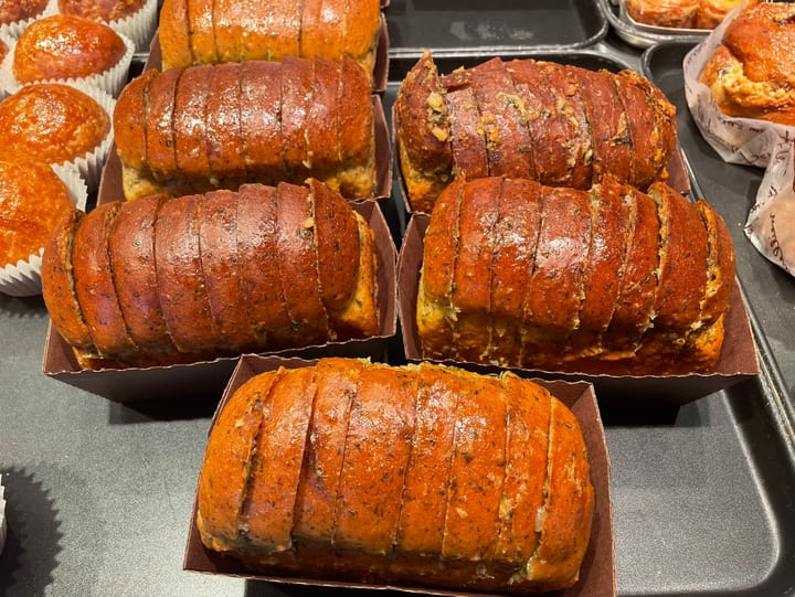 명장 제빵소 BEST 1위라는 쿠바 마늘 식빵입니다. 마늘 식빵은 하루 200개밖에 한정 판매된다고 하네요. 고소하고 진한 마늘향이 매우 좋았습니다. 매우 먹음직스러운 모습입니다.