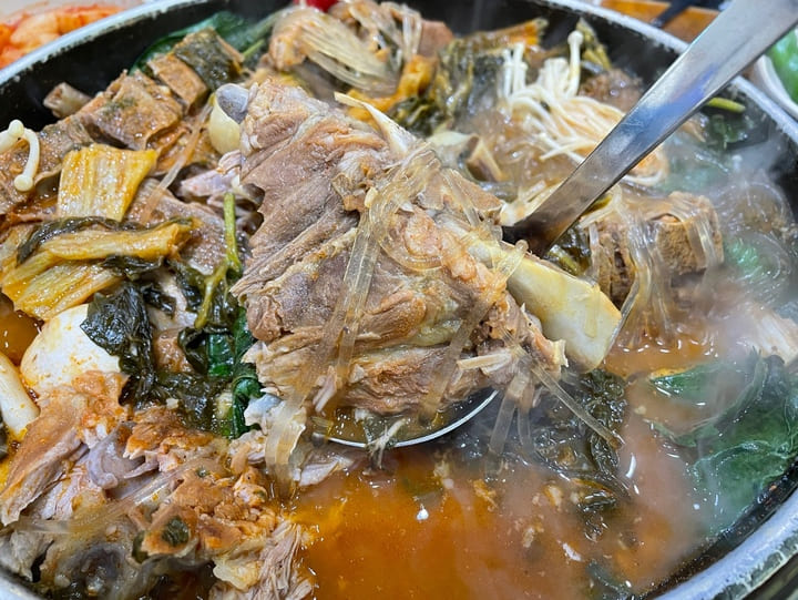 제가 이곳 뼈다귀 전골을 좋아하는 이유는 바로 고기 살이 매우 촉촉하고 국물이 잘 스며들어 진한 맛이 나기 때문입니다. 고기 재료가 오래되면 퍽퍽하고 수분기가 없는데, 이곳은 재료도 좋고 부드러운 육질을 그대로 느끼실 수 있습니다.