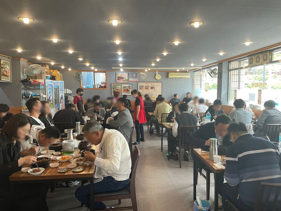 건물 입구로 들어서면 역시나 점심시간이기에 웨이팅이 필요합니다. 10분 정도 소요되었고, 많은 직장인들이 점심을 하고 있습니다. 지인이 양도 많고 맛도 좋고 가성비 최고라 칭찬을 자주 하더군요. 문 앞에 계신 이모에게 인원수를 말씀드리고 기다립니다.