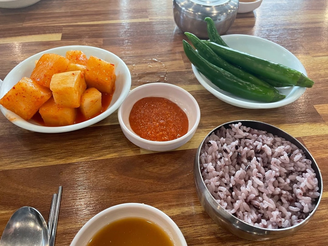 자리에 안내되면 잘 익은 깍두기와 고추, 쌈장, 따듯한 밥이 바로바로 나옵니다. 뼈해장국은 5분 정도 기다려달라고 말씀하셨습니다.