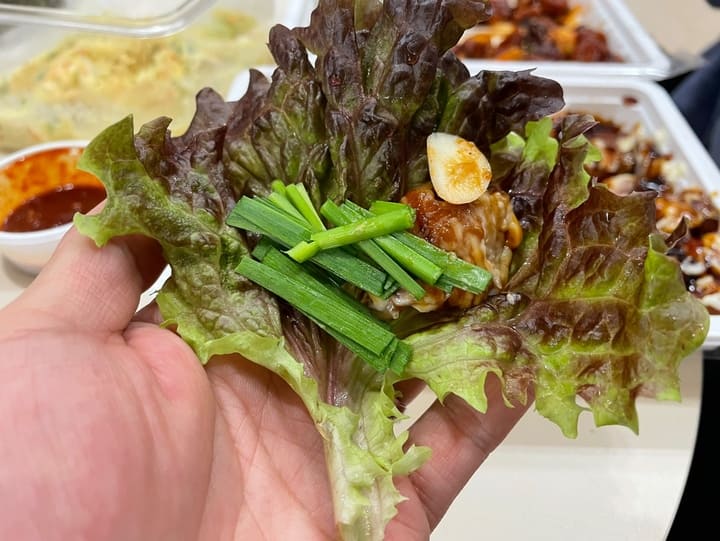 상추 위에 막창을 올리곤 부추와 마늘을 곱게 올려 한입에 넣어주면 소화도 잘되고 맛도 너무 좋습니다. 다만 매장에서는 불판 위에서 먹기 때문에 뜨끈하게 먹지 못해 아쉽기도 했지만 조금 식어도 걱정 마세요! 여전히 맛은 좋습니다.