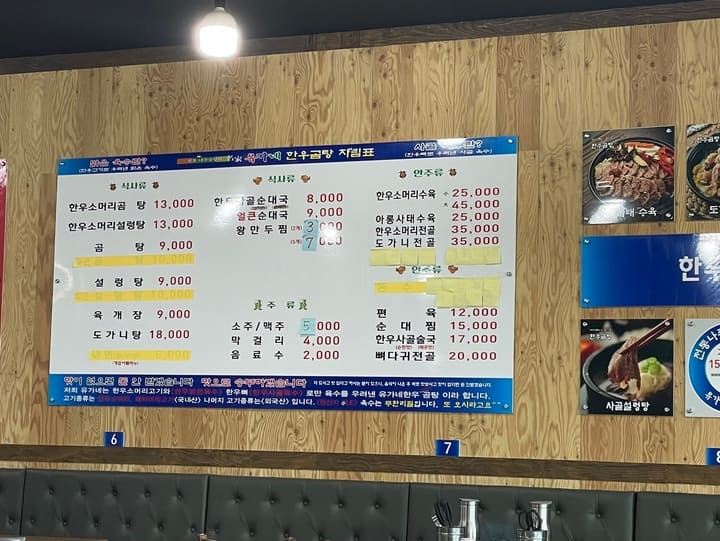 메뉴는 식사류와 안주류 등 다양한 종류를 드실 수 있습니다. 한우소머리곰탕을 메인으로 설렁탕과, 육개장, 특히 순댓국도 매우 맛있어 자주 먹고 있습니다. 얼큰한 음식을 좋아하신다면 얼큰 순댓국도 한번 드셔보시길 추천합니다. 회사 동료말로는 전골류도 맛이 좋았다고 합니다.