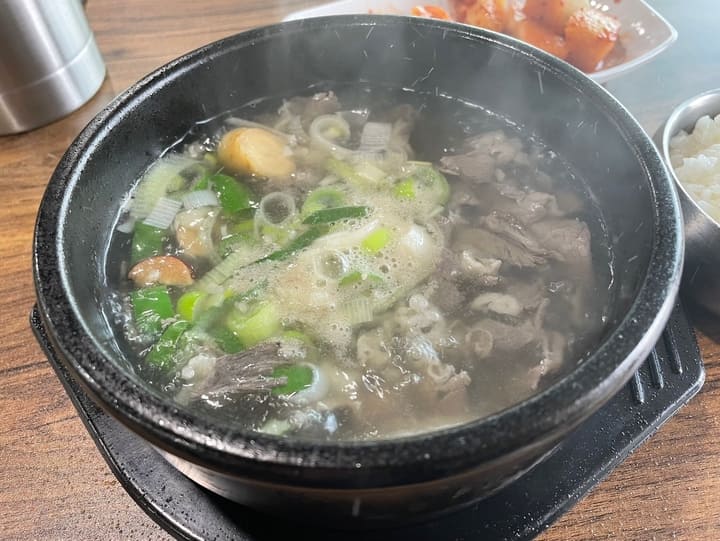 나주식 곰탕은 사골을 전혀 쓰지 않고 한우 육수를 사용하기 때문에 보통 곰탕과는 다른 맛을 자랑합니다. 다소 밋밋할 수 있지만 진하고 매력적인 육수가 일품입니다. 맛도 좋고 건강에도 좋은 음식이며, 원기회복에도 도움이 된다고 합니다.