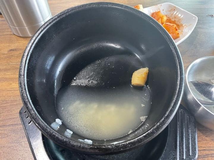 다양한 한약재료를 사용하여 한 그릇 뚝딱해 치우면 기력도 샘솟는 듯합니다. 곰탕 국물까지 야무지게 클리어하였습니다.