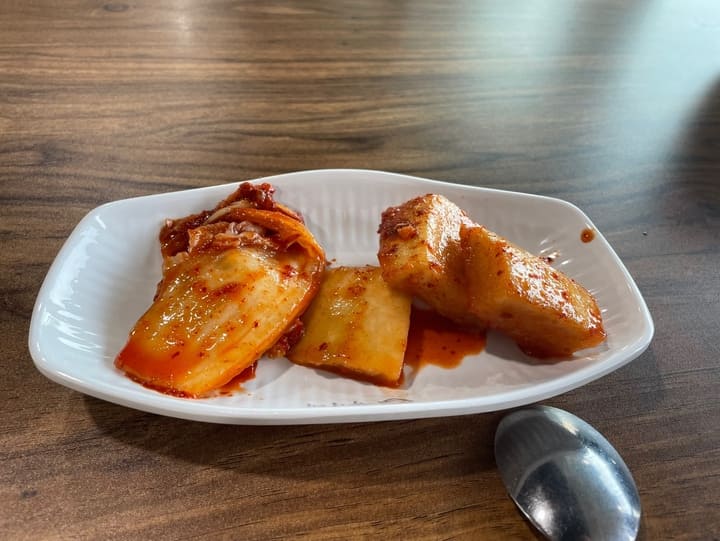 직접 담근 김치라 더욱 맛이 좋은 깍두기와 배추김치입니다. 역시 국밥에는 김치가 빠질 수 없고, 김치가 맛있어야 더욱 국밥류가 더욱 맛있다는 것은 국룰이죠. 한쪽에 배치된 항아리에서 적당량의 김치를 덜어내어 줍니다.