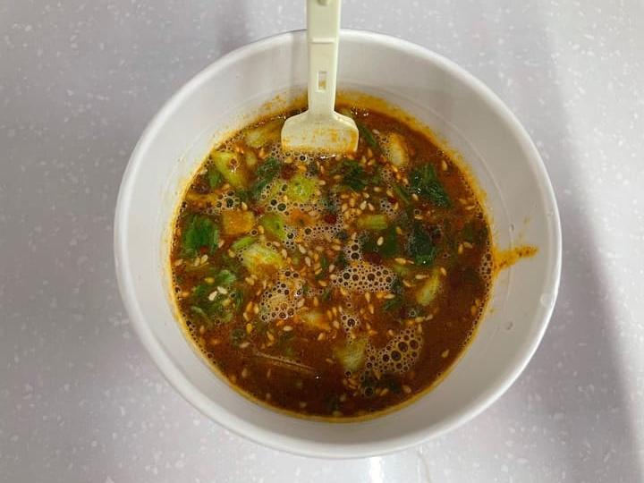 건더기 스프와 양념수프를 잘 저어주고 5분간 기다리니 마라탕 특유의 마라향이 강하게 풍깁니다. 그동안 다양한 마라맛의의 제품군이 나왔지만, 사실 맛을 흉내만 낸 것이라고 생각하는데요. 하지만 사천왕 마라탕면은 냄새부터가 찐 마라 냄새가 납니다.