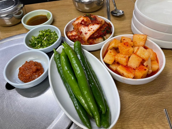 뼈해장국과 남원추어탕을 주문하니 친절하신 사장님이 밑반찬을 꺼내주십니다. 아삭한 오이고추와 함께 잘 익은 배추김치와 깍두기가 나왔습니다. 요즘 맛없는 김치가 나오는 음식점들도 많은데 이곳은 정말 김치가 맛있었습니다.