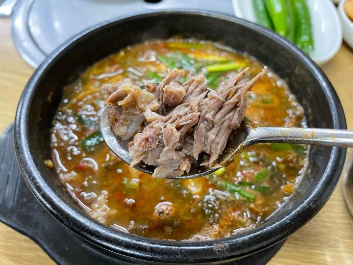 이곳에서 가장 인기가 많다는 뼈해장국이 나옵니다. 놀란 것은 정말 두툼한 살이 붙은 고기가 많이 들어있고, 시래기의 양도 엄청 많습니다. 국물도 진하고 시원합니다. 잡내가 나지 않아 특별히 좋았습니다.