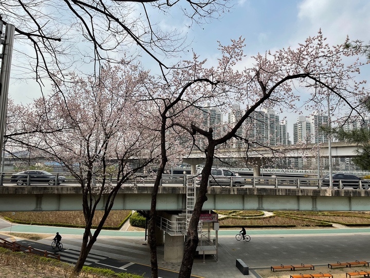 아직은 일교차가 있는 요즘이지만 낮에는 15도를 넘을 만큼 따듯한 날이 이어지고 있습니다. 중랑천을 따라 걷다 보면 자연스레 잘 가꾸어진 정원을 연상케 하는데요. 벚꽃이 아직 만발한 정도는 아니지만 서서히 만발을 할 준비를 마치고 있습니다.