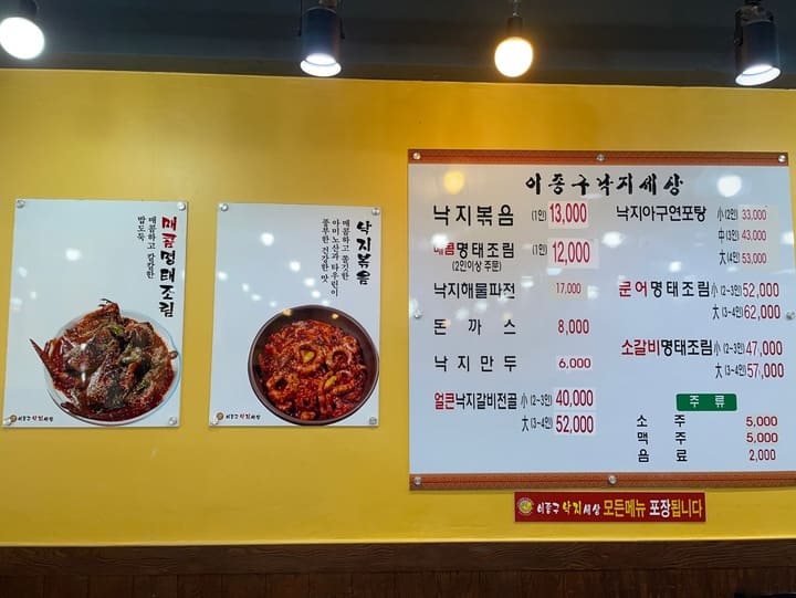 요즘에는 식당마다 가격이 안오른 곳이 없는 것 같습니다. 특히 이곳에서 가장 인기 있는 메뉴는 "매콤명태조림"이나 "낙지볶음", 또는 연포탕을 가장 많이 찾습니다. 매콤하고 칼칼한 명태조림은 밥도둑이 따로 없고, 쫄깃한 식감과 매콤 달콤한 낙지볶음음 별미 중에 별미입니다.