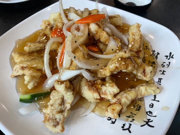 특히나 중식당 "장강"에서 가장 좋아하는 메뉴는 탕수육입니다. 달달하고 감칠맛나는 소스와 바삭하게 잘 튀긴 튀김이 정말 맛있습니다. 쫄깃한 고기의 식감 또한 정말 맛있습니다. 이곳 탕수육은 한 번씩 꼭 생각나서 찾게 만들더라고요.