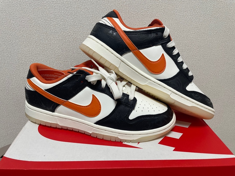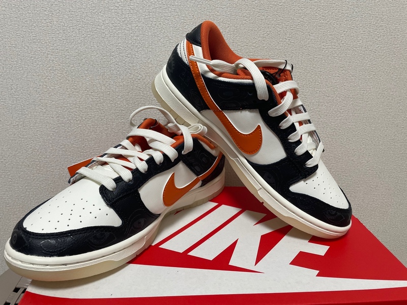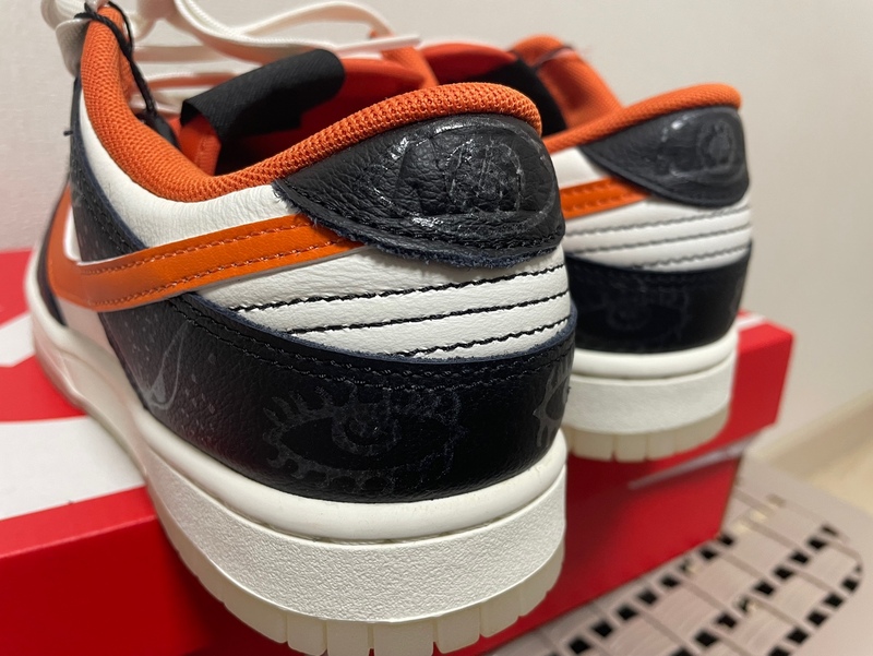 나이키는 할로윈을 기념하여 다양한 모델들이 매년 나왔습니다. 미라의 디테일을 담은 머미덩크(Mummy Dunk)도 발매했었습니다. 하지만 이 모델은 1월에 발매하여 딱히 핼러윈과 연관된 시즌이 아님에도 발매를 하였습니다. 화이트 바디의 검정/ 주황색의 배합이 예쁜 신발입니다.