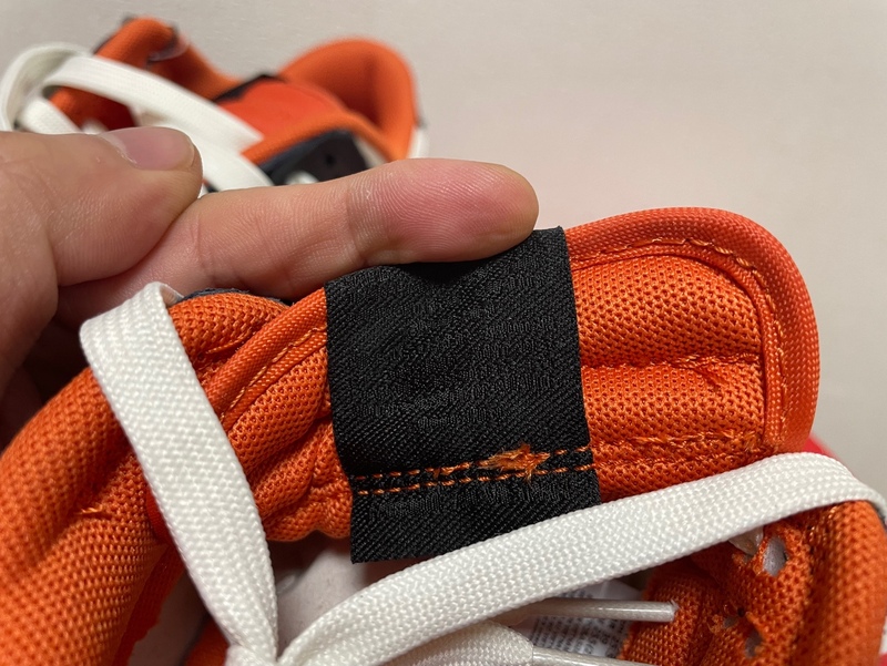 설포 부분의 택도 검은색으로 폰트 프린팅되어 있는데, 그냥 보면 아무것도 적혀있지 않은 검은택으로 확인됩니다. 인솔을 보시면 주황색의 깔창에 나이키 로고와 거미 한 마리가 그려진 프린팅이 자리 잡고 있습니다. 작은 디테일도 할로윈을 담으려는 노력이 보입니다.
