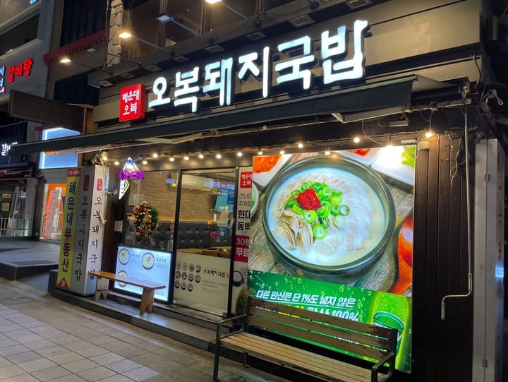 해운대 해변에 인접한 해운대 광장에 위치한 부산 3대 국밥집이라고 소문난 "오복돼지국밥"에 다녀왔습니다. 24시간 운영이되어 언제든 식사를 하실 수 있는데요.