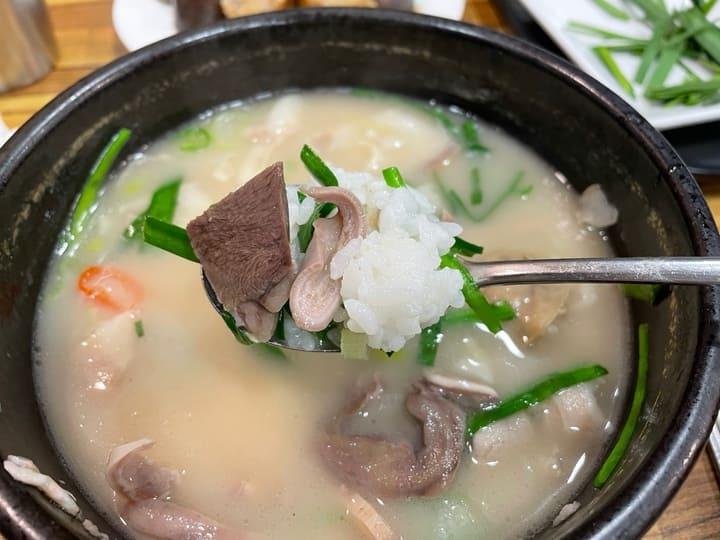 한입 먹어보고 정말 반했던 것은 먹어본 순대국밥 국물 중 가장 진한 국물이라고 할까요? 돼지 비린내는 나지 않고 정말 깔끔하고 진한 육수가 인상깊었습니다.