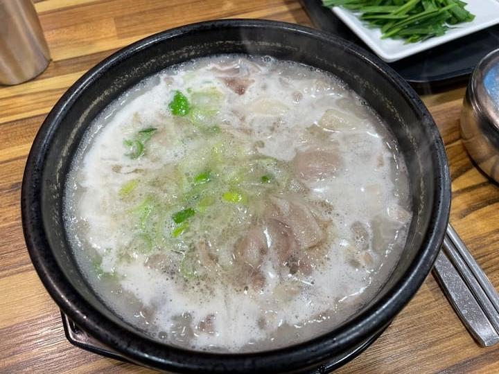 어디서 비슷한 느낌의 육수를 먹어보았다고 생각했는데 돈코츠 라멘의 진한 국물맛과 비슷합니다.