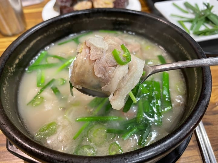 한입 먹어보고 정말 반했던 것은 먹어본 순대국밥 국물 중 가장 진한 국물이라고 할까요? 돼지 비린내는 나지 않고 정말 깔끔하고 진한 육수가 인상깊었습니다.