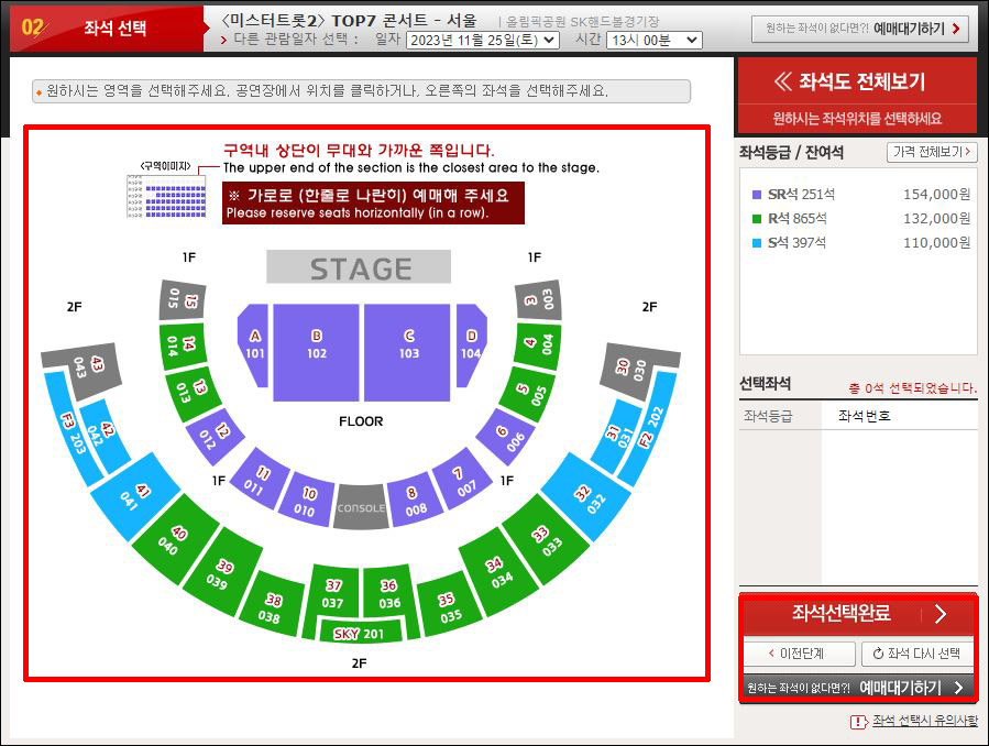 ③ 좌석 등급 및 잔여석을 확인 후 선택 → 좌석선택 완료 클릭