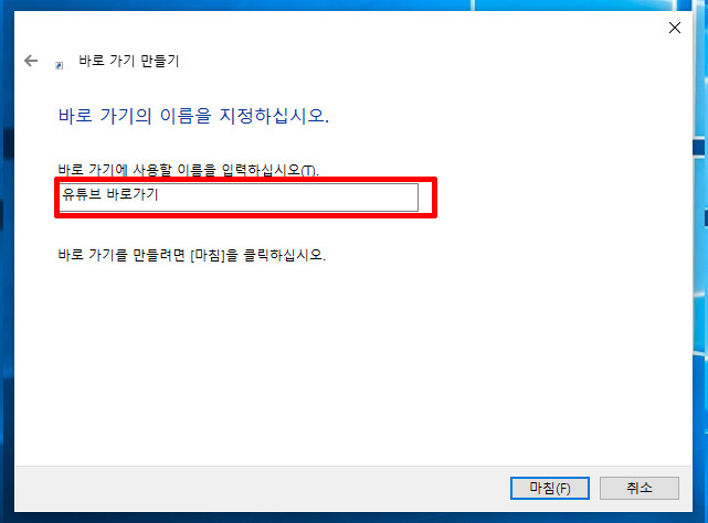 ③ 바로가기 이름을 지정하세요 → 유튜브 바로가기 → 마침