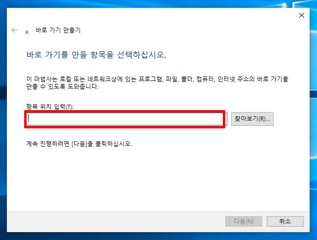 ① 윈도우 바탕화면에서 마우스 우측버튼 클릭 → 새로 만들기 → 바로가기 클릭